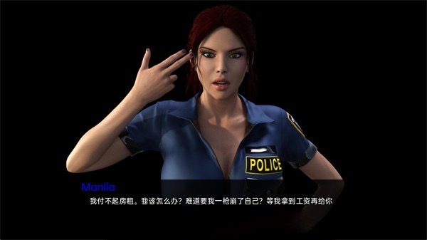 我游戏的主角是马尼拉·肖,一遵守纪律、工作出色的女警。但她总是遇到经济问题,连房租都交不起。
