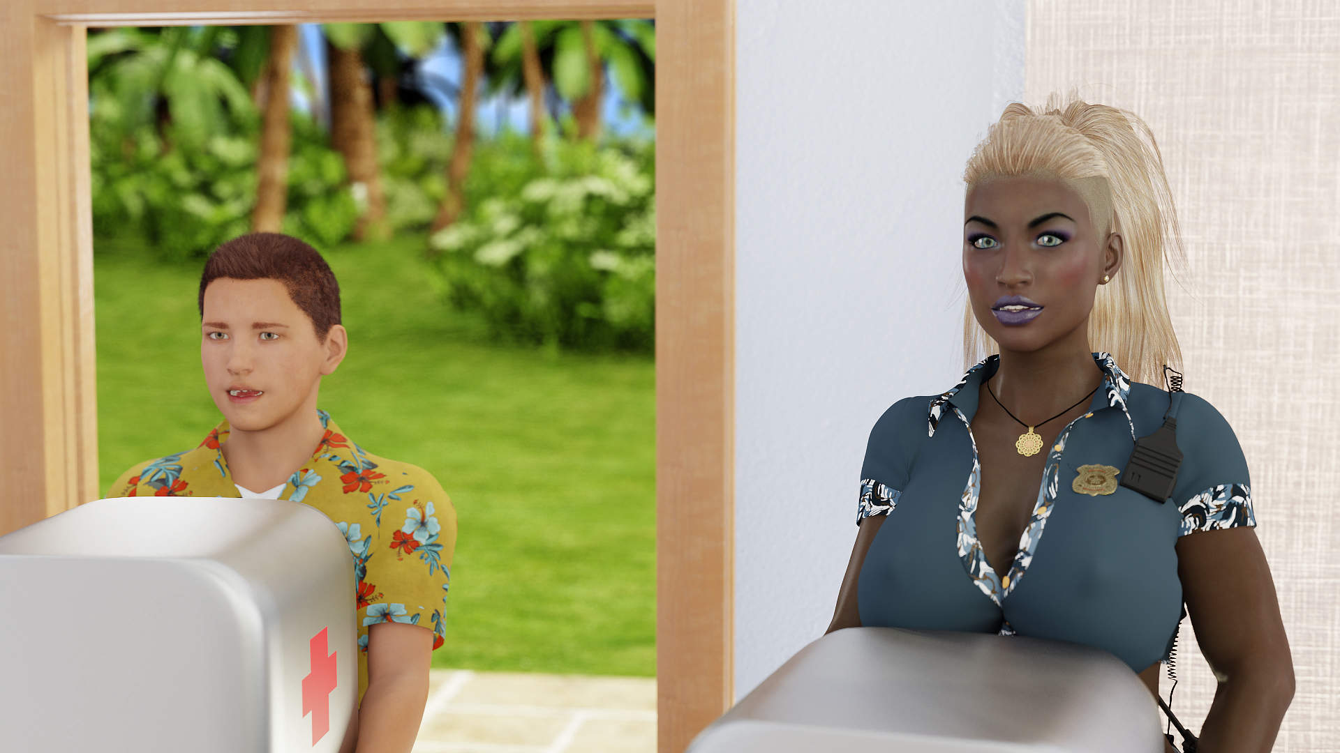 你和妈妈,姨妈一起到了一个热带的岛屿度假。