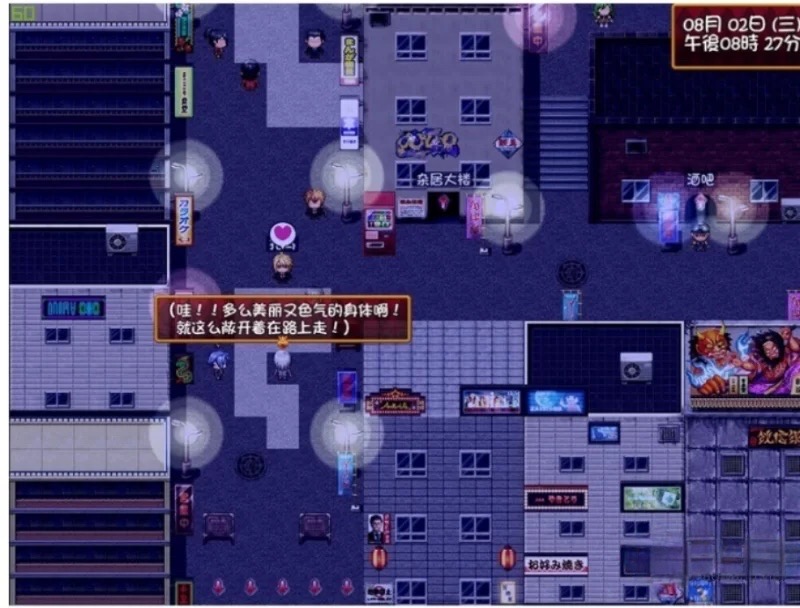 自由地探索街道,解锁不同的事件和结局。探索型的RPG,活动场景非常丰富。