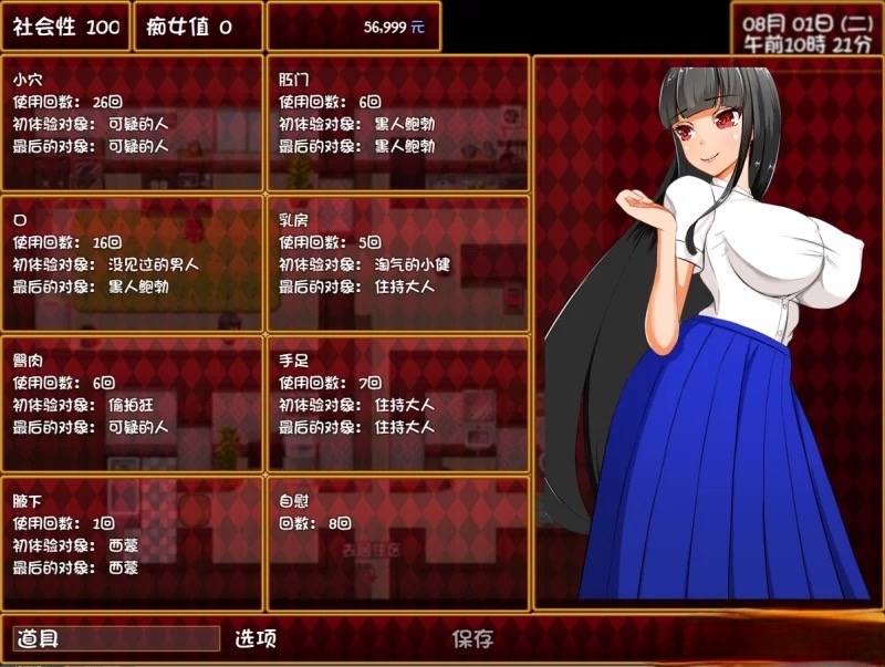有多个NPC支线,可以与其发展关系并进入结局,包含流浪汉,酒吧的黑人,NTR等内容。